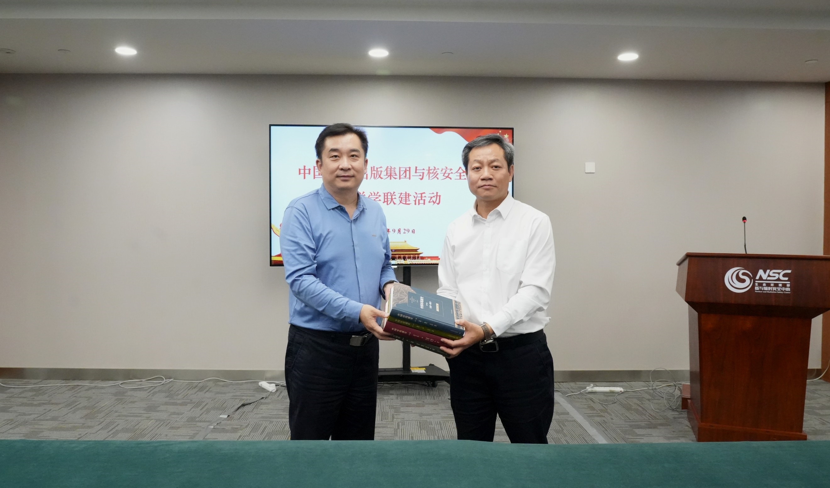 2024年9月29日下午,出版集团公司党委书记、董事长王付瑜一行7人赴生态环境部核与辐射安全中心开展联学联建活动。生态环境部核与辐射安全中心党委书记、主任严天文出席。
